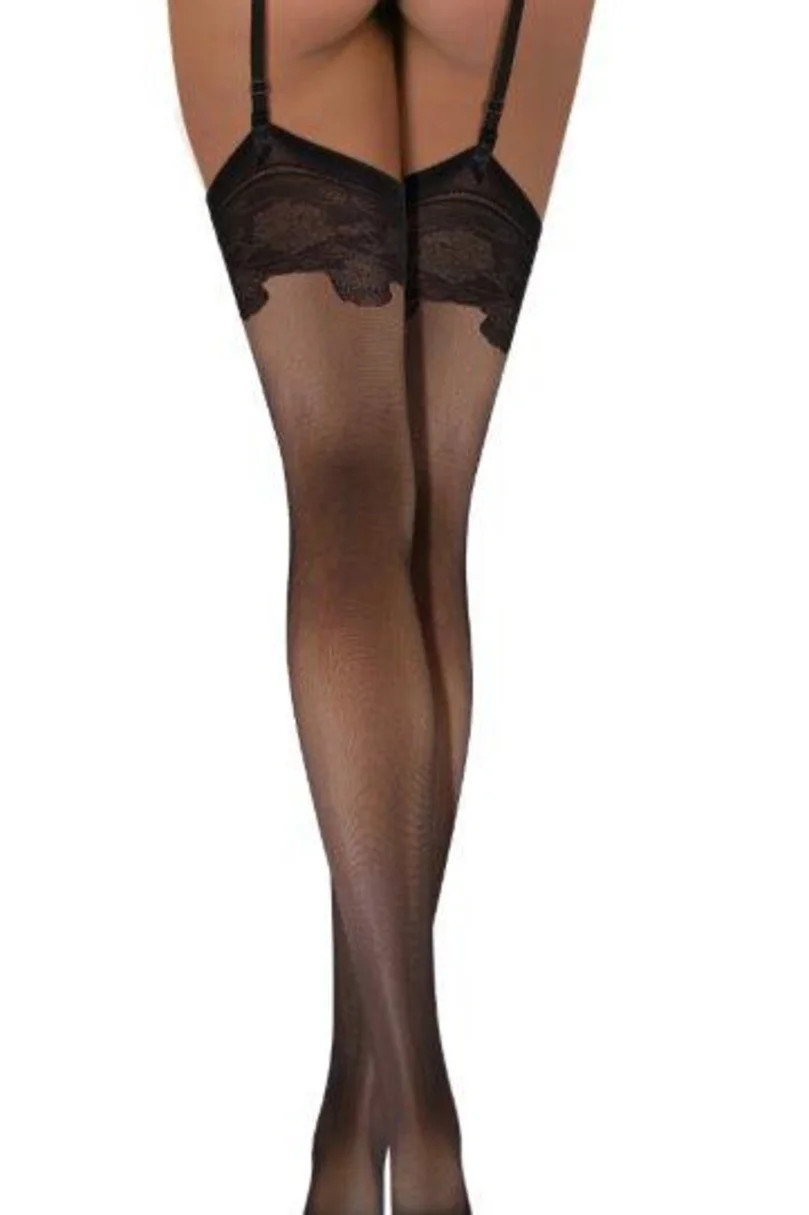 Dámské punčochy z pletené elastanové příze, matné s ozdobnou úpravou na gó.