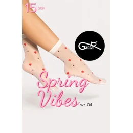 Přidejte do svého šatníku trochu romantiky s ponožkami Gatta Spring Vibes wz. 04, tloušťka 15 denierů. Tento okouzlující model upoutá pozornost jemnou, průhlednou látkou zdobenou červenými srdíčky a černými puntíky. Ponožky jsou ideální pro jaro a léto, potěší nejen svým vzhledem, ale díky měkké, pružné přízi a pohodlnému stahování zajistí i pohodlí. Jsou ideální volbouó pro ženy, kteréó chtějí spojit decentní styl s dívčím šarmem.