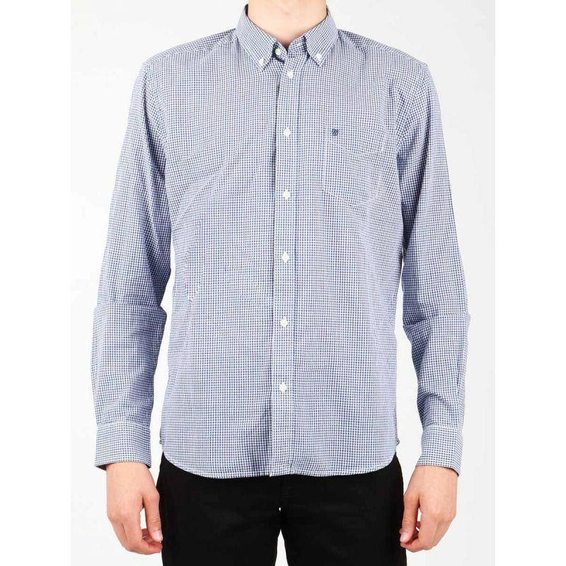 Pánská kostkovaná košile s dlouhými rukávy, zapínáním na knoflíky a jednou kapsou s písmenem W v horní části.