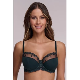 Biustonosz marki Ava. Model 1030 Novato. Posiada druty, które podpierają piersi odpowiednio je kształtując. Fiszbiny pionowe osadzone na bokach. Produkt posiada regulowane ramiączka bez możliwości ich odpięcia. Haczyki do ramiączek metalowe. Biustonosz zapinany na haftki. Miejsce zapięcia: tył. Dwa rzędy haftek pionowych. Trzy stopnie haftek poziomych. Produkt został wykonany z 88% poliamid, 8% bawełna, 4% elastan. Produkt damski.