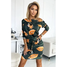 13-165 Sportovní šaty s kapsami - zelené + oranžové rty