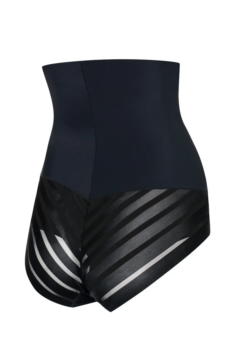 Kalhotky s vysokým pasem ozdobené průsvitnými všivkami a se zajímavě řešeným pozadím. Mají ploché a ultratenké okraje ušité pomocí technologie INVISIBLE_LINE a díky tomu nejsou vidět pod obepnutým oblečením. Kalhotky tvarují pas, břicho i zadeček. V rozkroku mají bavlněnou všivku. 88% polyamid, 12% elastan.
