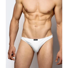 Stringi męskie w kolorze białym są bardzo wysoko podkrojone po bokach, mają niską talię wykończoną ledwie wyczuwalną gumą wewnętrzną i w całości eksponują pośladki. Slipy wykonane są z miękkiej i przyjemnej w dotyku bawełny połączonej z elastanem. Nasza dzianina jest niezwykle wytrzymała w użytkowaniu - odporna na wysokie temperatury oraz mechaniczne działanie. Ma też zdolność wchłaniania wody, dzięki czemu zapobiega poceniu się ciała.