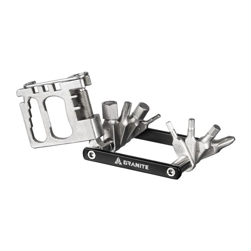 Granite Diverse 20 łączy maksymalną funkcjonalność w imponująco smukłej obudowie – zaledwie 11 mm grubości. To ultrakompaktowe narzędzie wielofunkcyjne, ważące zaledwie 104 g, zostało stworzone dla rowerzystów, którzy oczekują wszechstronności bez pokaźnych gabarytów. Z 20 niezbędnymi funkcjami – w tym bitami imbusowymi (2 do 8 mm), T25, wkrętakiem PH2, skuwaczem łańcucha i hakiem, kluczami do szprych, kluczami nasadowymi, a nawet otwieraczem do butelek – to kompleksowe rozwiązanie do napraw na szlaku i regulacji w trakcie jazdy.