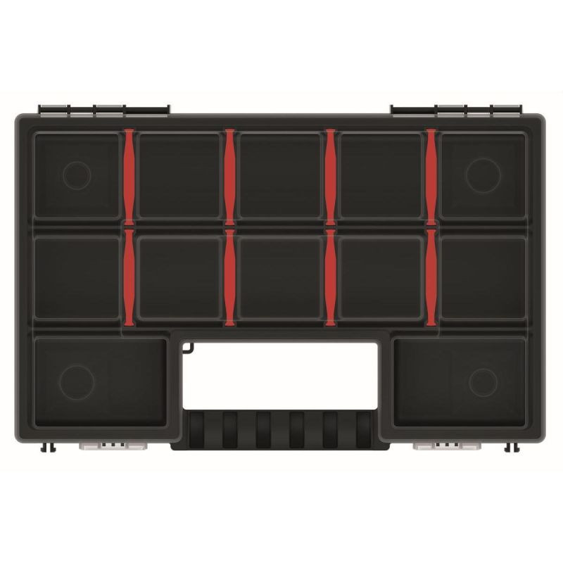 Ten podwójny organizer z 24 komorami zapewni ład i porządek wśród twoich narzędzi i drobnych elementów warsztatowych.