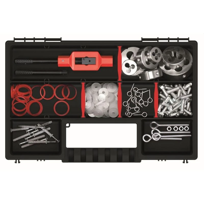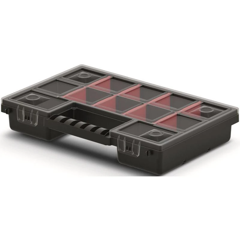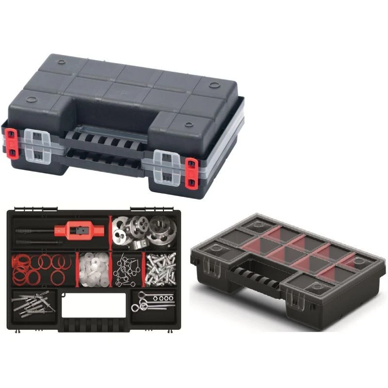 Oragnizer posiada 16 ruchomych przegródek, dzięki którym dostosujesz wielkość i ilość komór do rodzaju i wielkości przechowywanych narzędzi, a wygodne przejrzyste wieczko pozwoli Ci dojrzeć rzeczy bez otwierania pokrywki.