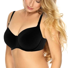 Podprsenka Gaia. Model 281 Kate. Má dráty, které prsa vhodně tvarují. Výrobek má nastavitelné popruhy bez možnosti odepnutí. Kovové háčky na popruh. Podprsenka se zapínáním na háčky a oči. Upevňovací bod: vzadu. Dvě řady svislých háčků. Tři stupně horizontálních háčků. Výrobek je vyroben z 69 % z polyamidu, 18 % z bavlny, 8 % z ostatních materiálů a 5 % z elastanu. Výrobek pro ženy.
