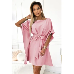 SOFIA Dámské motýlí šaty se zavazováním v pase - špinavě růžové. Vyrobeno z látky příjemné na dotek. značka numoco. polská výroba.