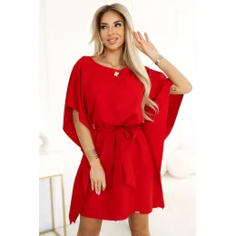 287-35 SOFIA Motýlí šaty se zavazováním v pase - ČERVENÉ
