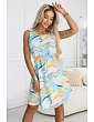 296-15 VICTORIA Trapézové letní šaty v barevných vlnách - citronově modré