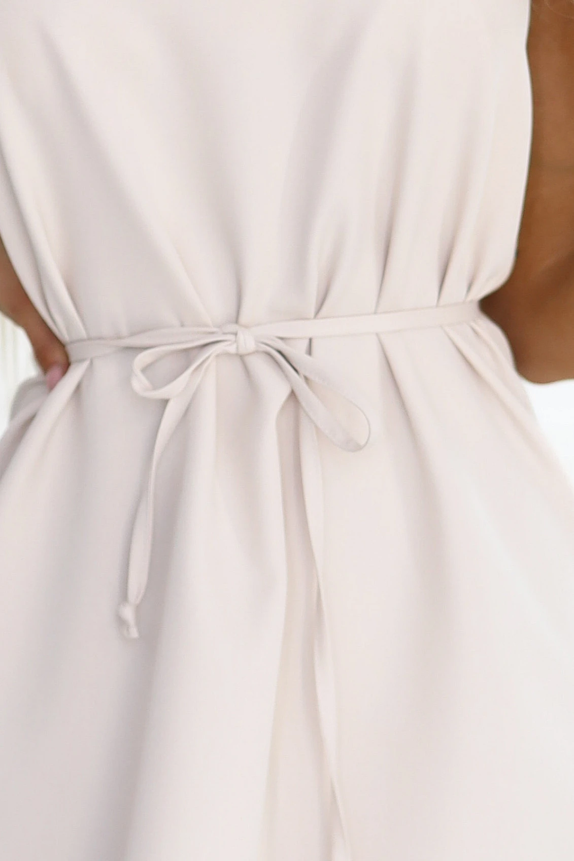 Světle béžové trapézové šaty Numoco s vázáním v pase
