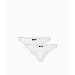 2-PACK Stringi męskie - StringiStringi męskie w kolorze białym są bardzo wysoko podkrojone po bokach, mają niską talię wykończoną ledwie wyczuwalną gumą wewnętrzną i w całości eksponują pośladki. Slipy wykonane są z miękkiej i przyjemnej w dotyku bawełny połączonej z elastanem. Nasza dzianina jest niezwykle wytrzymała w użytkowaniu - odporna na wysokie temperatury oraz mechaniczne działanie. Ma też zdolność wchłaniania wody, dzięki czemu zapobiega poceniu się ciała.