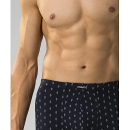 W 3-packu znajdziesz granatowe i szare bokserki męskie ozdobione maleńkich rozmiarów wzorkami w zegarki oraz ciemno-niebieskie, gładkie. Sportowe bokserki mają niską talię, w której zaznaczone są miękką i nieuciskającą gumą wewnętrzną oraz standardowej długości nogawki.