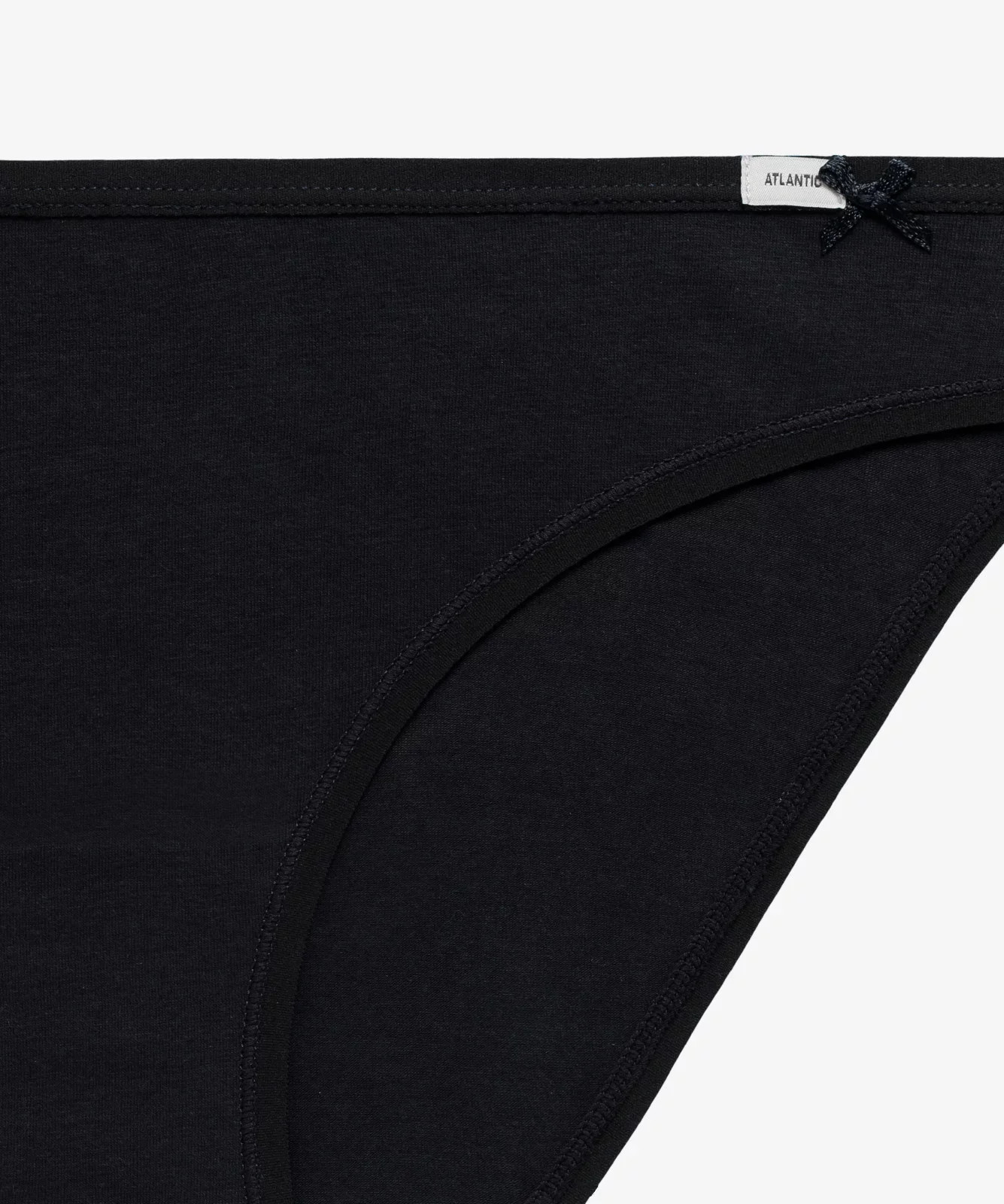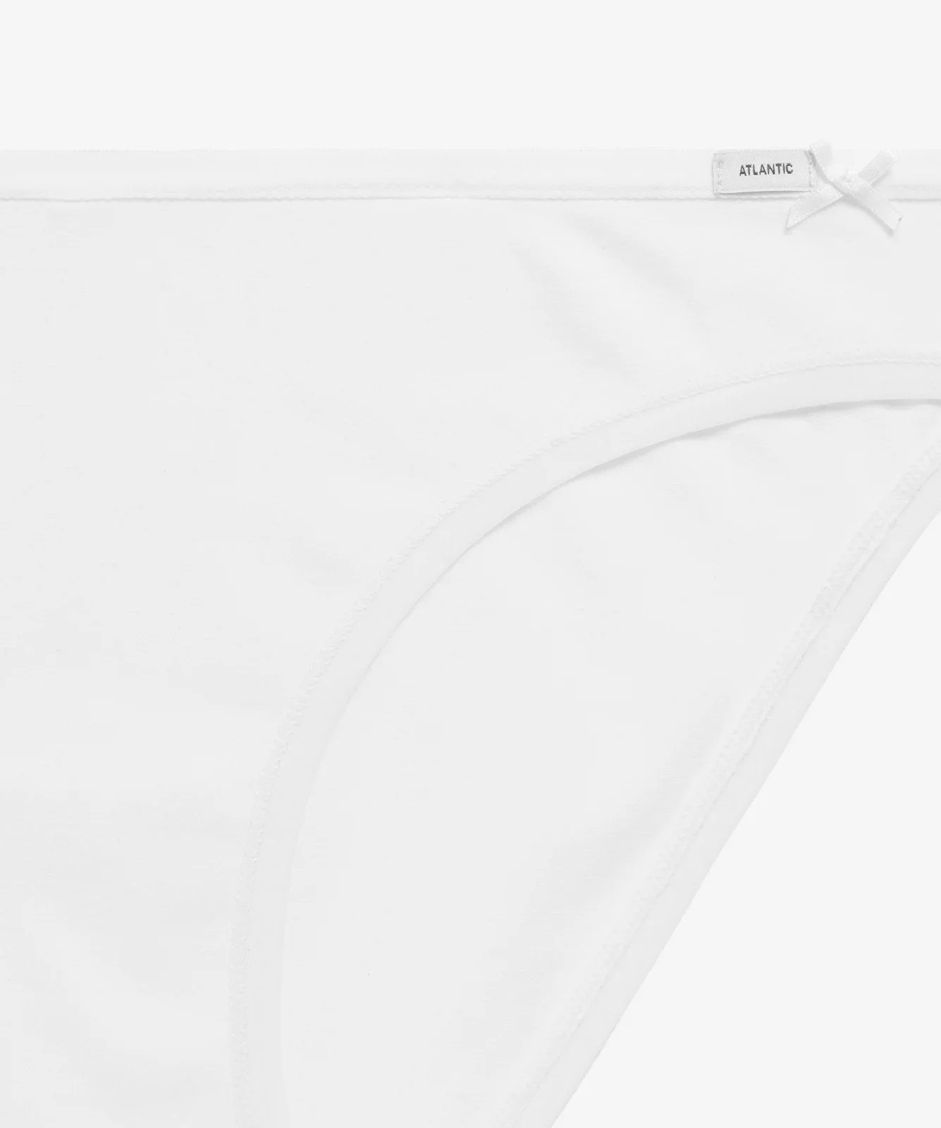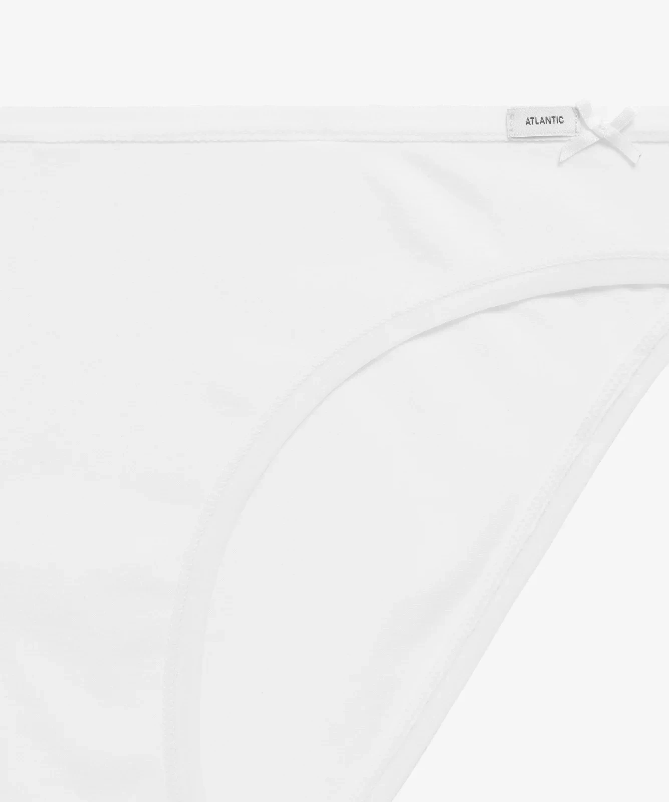 Nasz trzypak to figi damskie o kroju bikini w uniwersalnych kolorach: białym, czarnym i jasnym odcieniu szarego melanżu. Majtki odznaczają się niskim stanem wykończonym miękką i nieuciskającą ciała lamówką z małym logo Atlantic oraz dość głęboko wyciętymi bokami, eksponującymi i wydłużającymi nogi.