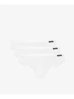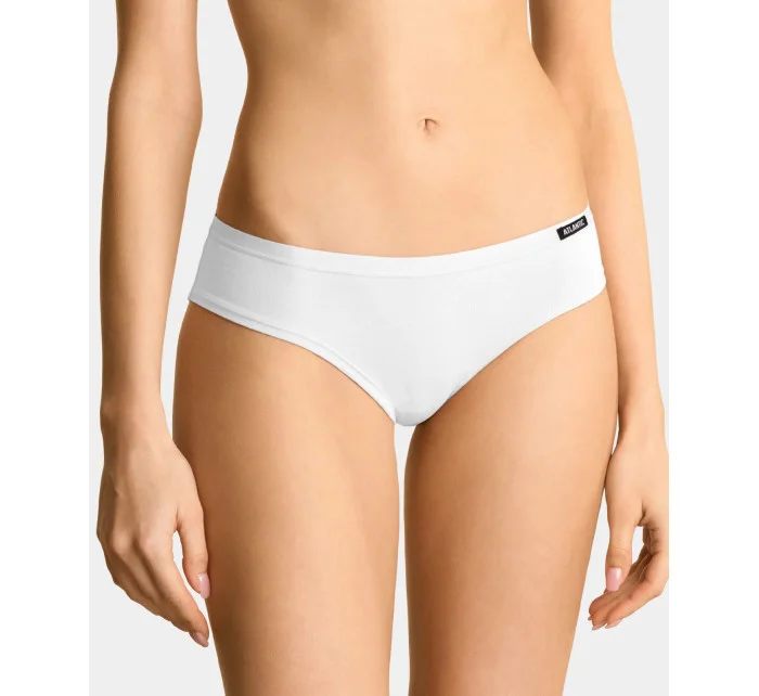 3-PACK Figi Damskie Bikini, Kolekcja Basic - Bielizna damskaW trzypacku znajdziesz majtki damskie typu bikini w ponadczasowym, białym kolorze. Krój charakteryzuje się nisko zaznaczoną talią (na lewym boku ozdobioną plakietką z niewielkich rozmiarów napisem ATLANTIC) oraz wysoko podciętymi bokami. Majtki bikini wykonane zostały z niezwykle lekkiej i przyjemnej w dotyku dzianiny zwanej thin & light, będącej połączeniem bawełny (90%) i elastanu (10%). Bielizna doskonale dopasowuje się do ciała, podkreśla sylwetkę i zapewnia maksymalny poziom komfortu.