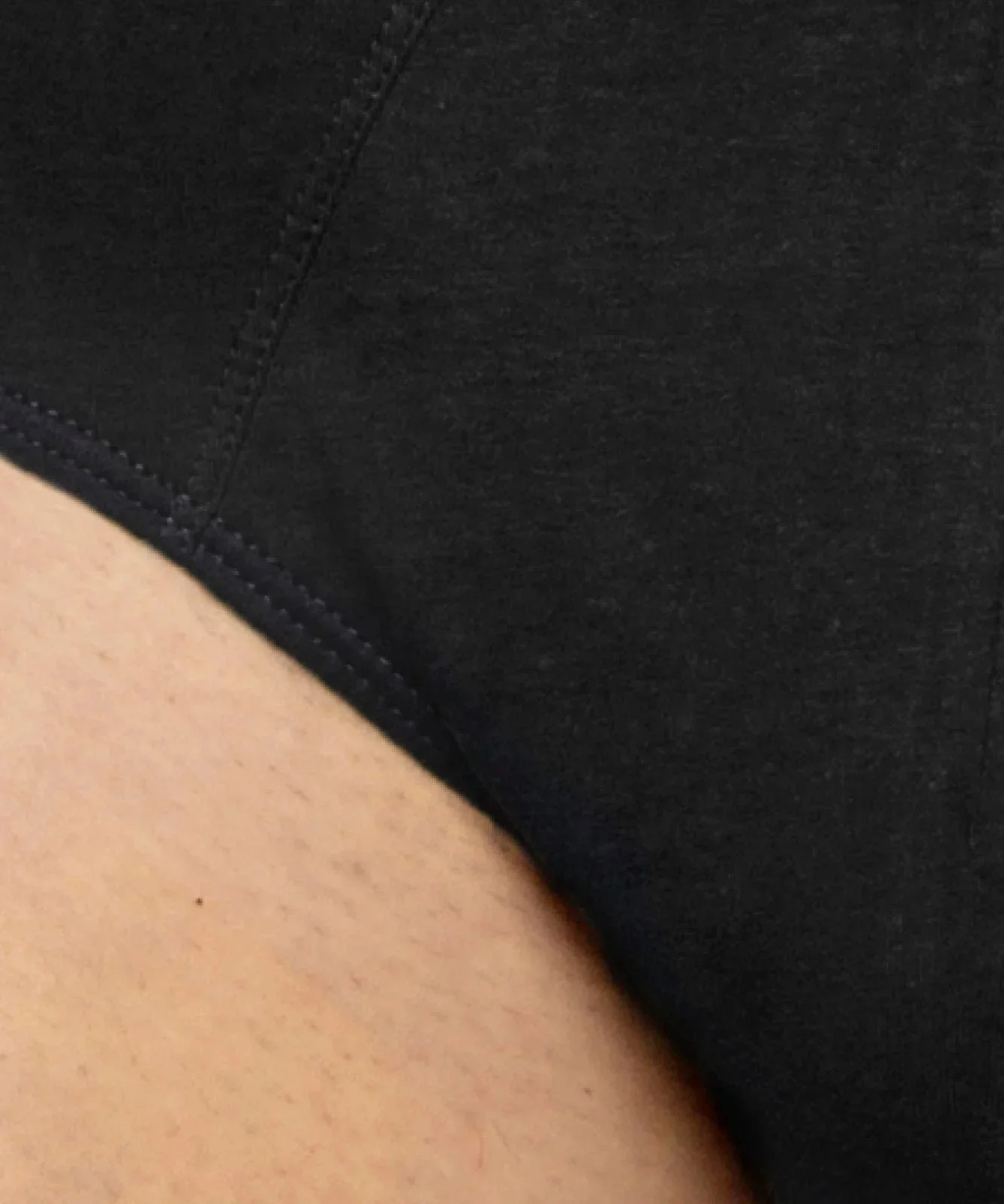 Slipy męskie w kolorze czarnym, charakteryzują się klasycznym fasonem, co oznacza, że są średniej szerokości po bokach i mają średniej wysokości talię wykończoną gumą tunelową. Bielizna wykonana jest z miękkiej w dotyku bawełny, która ponadto jest odporna na wysokie temperatury i mechaniczne działanie, a poprzez zdolność wchłaniania wody, zapobiega poceniu się.
