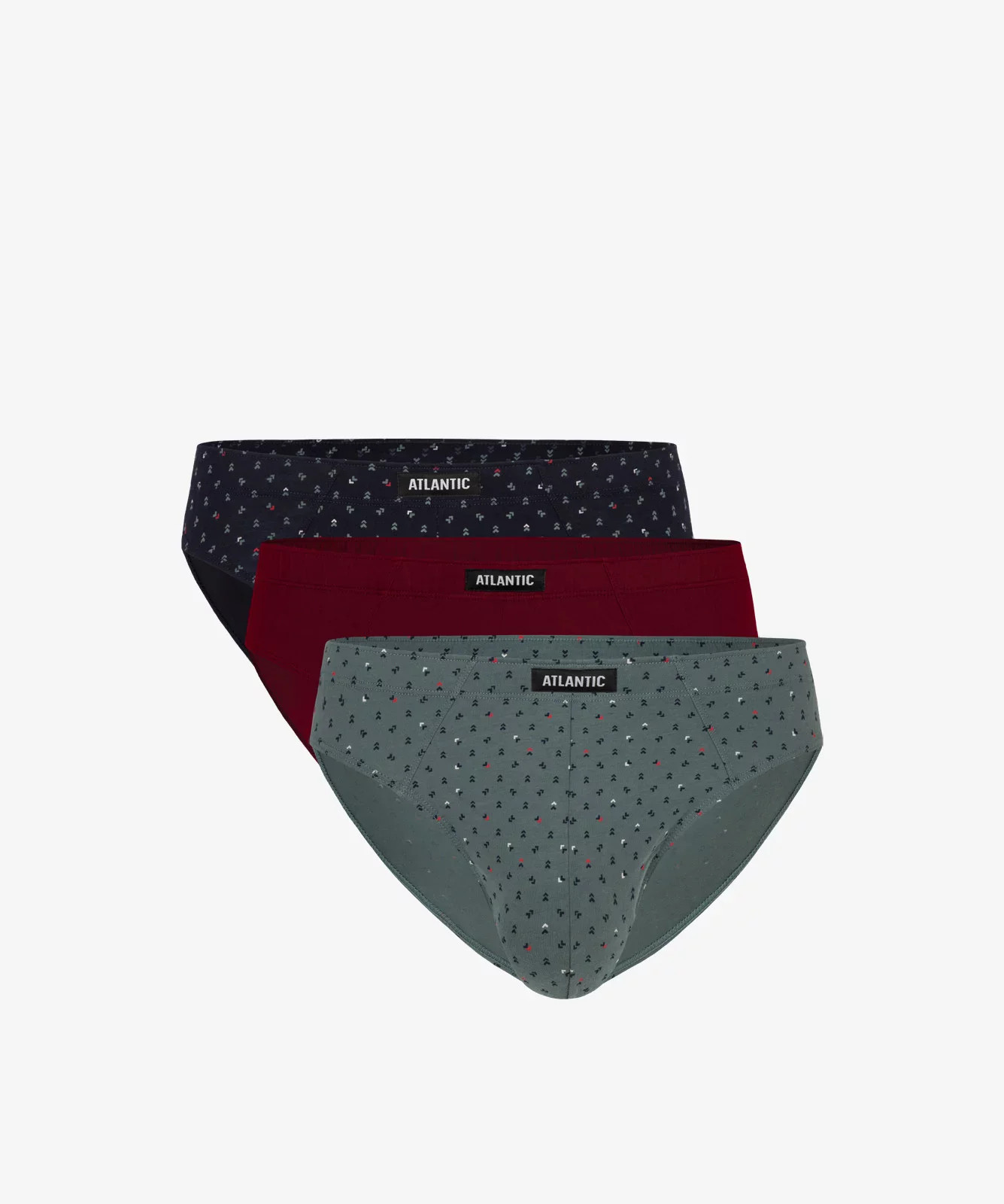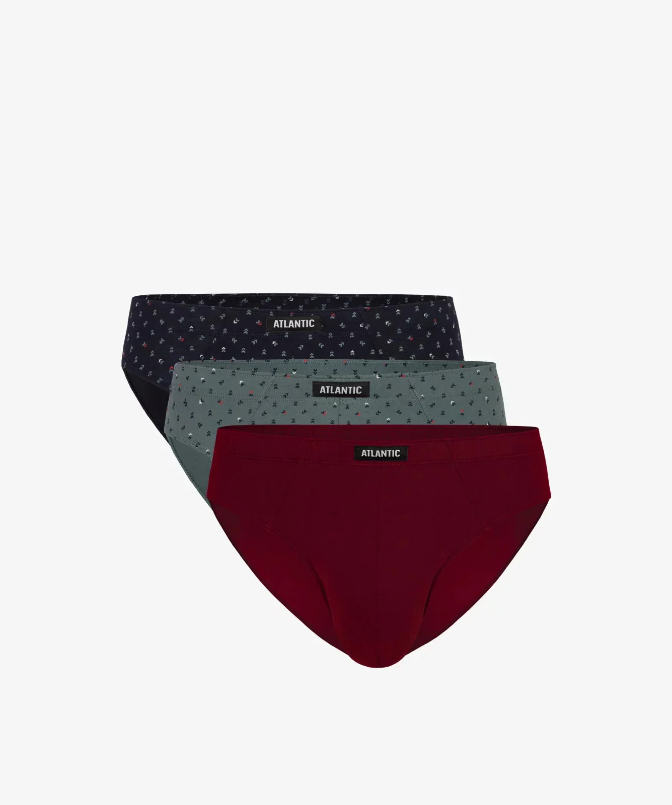 Nasz 3-pack to slipy męskie w wydaniu: granatowym i szmaragdowym (pokryte maleńkich rozmiarów graficznymi wzorkami) oraz w szlachetnym, winnym odcieniu (gładkie). Slipy o sportowym charakterze mają niski stan oraz dość głęboko podcięte boki. W talii majtki zaznaczone są miękką (ledwie wręcz wyczuwalną) gumą wewnętrzną. W bieliźnie zastosowaliśmy także profilujące cięcia, dzięki którym slipy perfekcyjnie dopasowują się do sylwetki. Majtki wykonane są z przyjemnej w dotyku i wytrzymałej w użytkowaniu bawełny. Nasza dzianina przepuszcza powietrze, a tym samym zapobiega nadmiernemu poceniu się ciała.