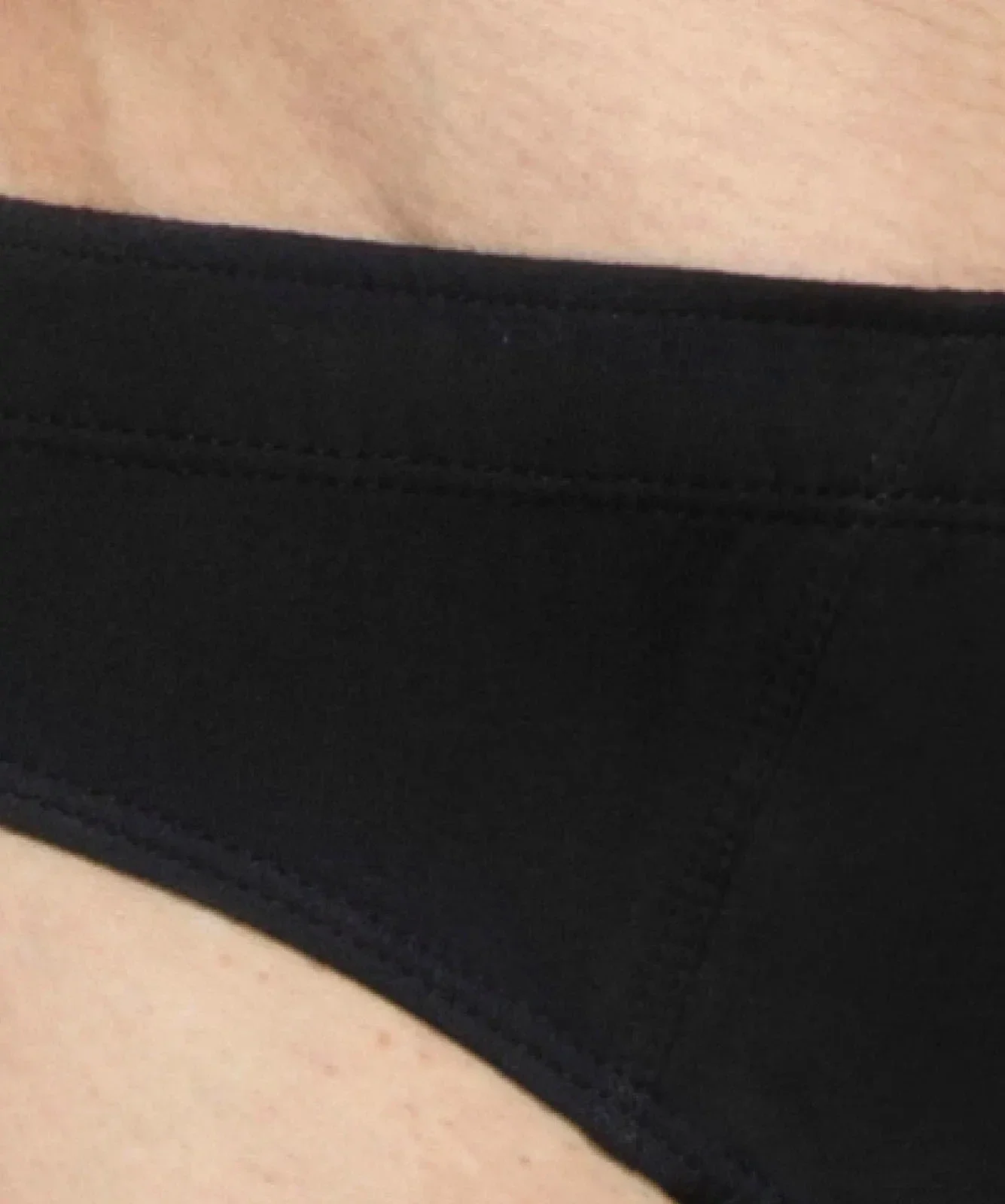 Slipy męskie w kolorze czarnym, charakteryzują się sportowym fasonem, co oznacza, że są wysoko podkrojone wokół ud i mają obniżoną talię wykończoną gumą tunelową. Bielizna wykonana jest z miękkiej w dotyku bawełny, która ponadto jest odporna na wysokie temperatury i mechaniczne działanie, a poprzez zdolność wchłaniania wody, zapobiega poceniu się. Bielizna gwarantuje niczym nieskrępowaną wygodę.