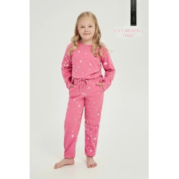 Dívčí pyžamo ušité z vysoce měkké bavlny. Vzorované tričko s dlouhými rukávy. Doplňují je dlouhé vzorované kalhoty s kapsami.