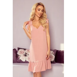 Rosita - šaty s mašlemi na ramenou a volánem. barva - pudrově růžová. polská výroba. značka numoco.