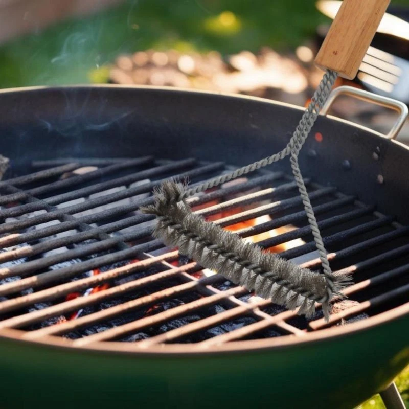 Kartáč na čištění grilu s drátěnými štětinami je nástroj, který zajistí účinné čištění vašeho grilu, od odstranění zbytků jídla až po odstranění připáleného tuku.