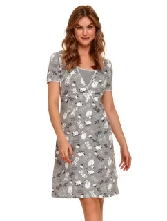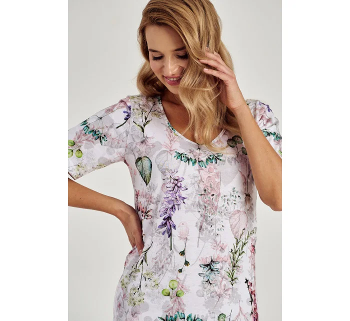 Dámská košile s krátkým rukávem, vyrobená ze vzorované jemné bavlny. Výstřih do V, délka ke kolenům, jemné rozparky na bocích.
