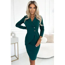 Přidání recenze k 340-6 Šaty s výstřihem, knoflíky a límečkem - BOTTLE GREEN