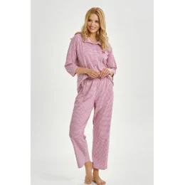 Dámské dlouhé pyžamo Jolie 3435 je klasikou s moderním nádechem, ideální pro ženy, které si cení elegance a pohodlí.Je vyrobeno z vysoce kvalitní 100% bavlny, je měkké a příjemné k pokožce, což zaručuje dokonalý spánek.Nadčasová kostkovaná košile má elegantní límeček, zapínání na knoflíky a 3/4 rukávy připomínající košili.Rovně střižené kalhoty zaručují pohodlí a volnost pohybu.Stylový komplet, který se hodí pro každé roční období.