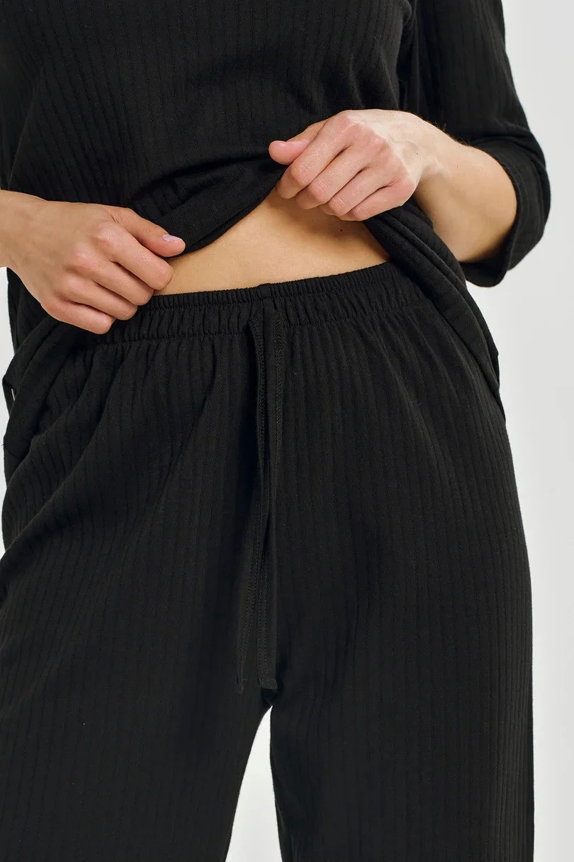 Dlouhý dámský pyžamový komplet Melania 3445 je pohodlný komplet vytvořený pro ženy, které ocení přírodní materiály a každodenní pohodlí.Je celý vyroben z kvalitní 100% bavlny, která je příjemná k pokožce a zajišťuje vynikající prodyšnost.Volné tričko zdobené širokým pruhem má výstřih do „V” a rukávy ve 3/4 délce, což mu dodává lehkost a moderní vzhled.Rovně střižené kalhoty v délce 7/8 zaručují volnost pohybuó a pohodlí při nošení.Ideální pro noční vycházky i domácí relaxaci.