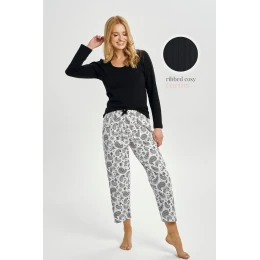 Dámské dlouhé pyžamo AIDA 3454 od značky Taro je ideální volbou pro ženy, které ocení klasickou eleganci a naprosté pohodlí. Je vyrobeno z kvalitní bavlny s širším pruhem a nabízí měkkost, prodyšnost a stylový vzhled. Tričko s dlouhými rukávy a kulatým výstřihem nabízí volnost pohybu, zatímco volné kalhoty s délkou do lýtek zajistí pohodlný spánek. V pase je ozdobná mašle, která dodává ženský nádech.