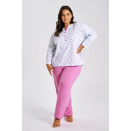 Piżama damska długa YOLANDA (model 3462) to wyjątkowe połączenie komfortu, funkcjonalności i kobiecej estetyki – stworzona z myślą o kobietach w rozmiarach 2XL–4XL, które cenią naturalne tkaniny i elegancki styl nawet w domowym zaciszu.