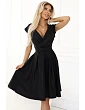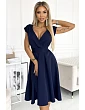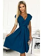 Scarlett - rozevláté šaty s obálkovým výstřihem a páskem. Vyrobeno z materiálu příjemného na dotek (95 % polyester, 5 % elastan). barva: tmavě modrá. značka numoco. polská výroba.