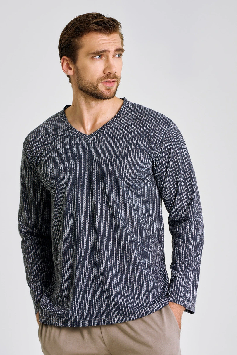 Piżama męska Luca 3482 marki Taro w rozmiarze 3XL-4XL to wygodna propozycja na każdą noc. Koszulka z długim rękawem i modnym wzorem w połączeniu z jednolitymi spodniami z praktycznymi kieszeniami tworzy zestaw idealny do snu i domowego relaksu. Dekolt w szpic dodaje stylu, a elastyczna gumka w pasie gwarantuje komfort noszenia. Całość wykonana z miękkiej, 100% bawełny.