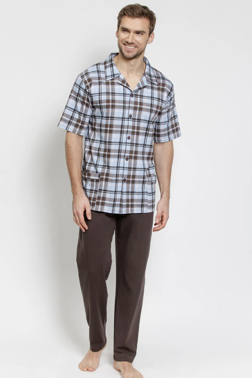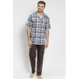 Pánské pyžamo 3579 ALEXANDER TARO je klasický a pohodlný noční komplet pro muže, kteří ocení pohodlí a nadčasový styl. Model je k dispozici ve velikostech M-2XL a je ideální na spaní i domácí lenošení.
