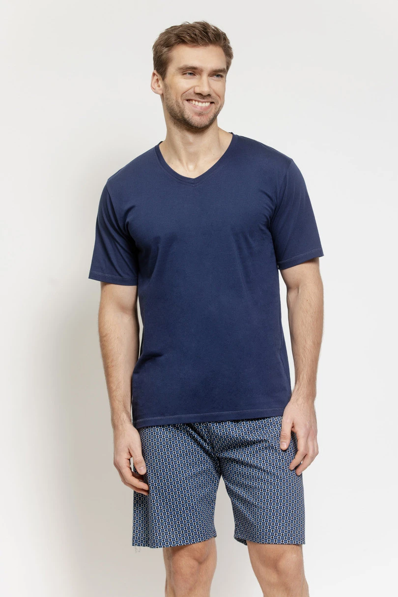 Stylovým doplňkem soupravy jsou šortky s jemným geometrickým vzorem. Volný střih a elastický pas zaručují pohodlné nošení bez pocitu tlaku. Jedná se o ideální volbu pro jarně-letní sezónu a pro muže, kteří dávají přednost lehkému a vzdušnému nočnímu prádlu.