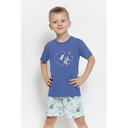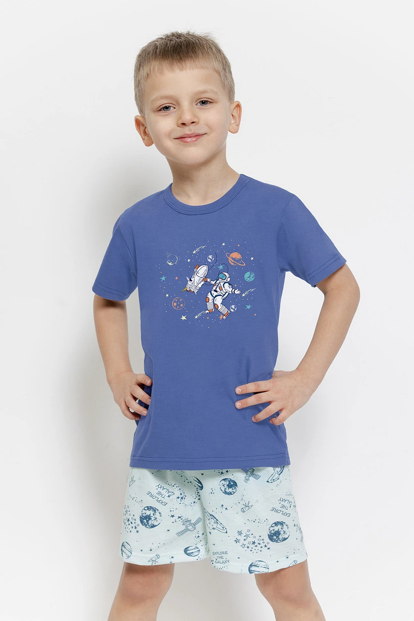 Chlapecké pyžamo Orion značky TARO je pohodlná a barevná souprava vytvořená s ohledem na pohodlí při spánku a dětskou fantazii. Souprava se skládá z trička s krátkým rukávem a krátkých šortek, takže je ideální pro teplejší noci.