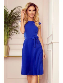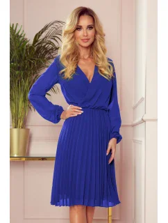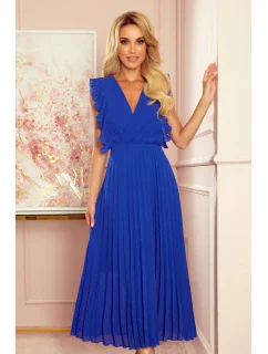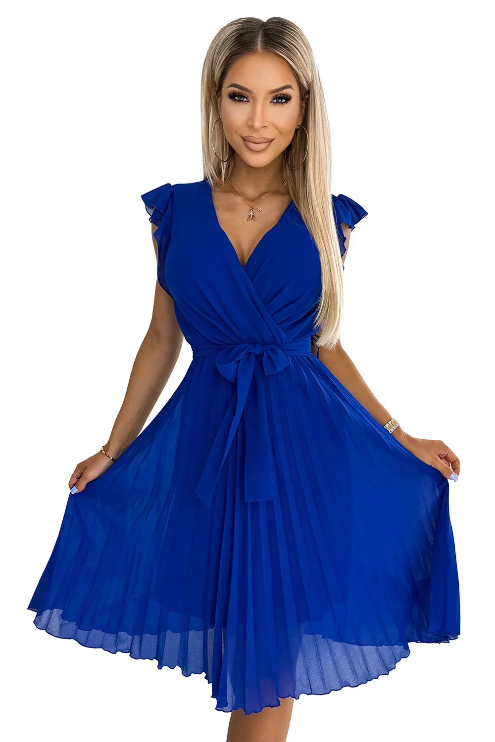 Polina - šifonové plisované šaty s výstřihem a volánky na ramenou. barva: chrpová. značka numoco. polská výroba.