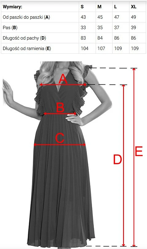 | Délka od podpaží(D) | 83 | 84 | 86 | 86 |