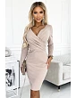 398-4 Elegantní bavlněné šaty s obálkovým výstřihem a dlouhými rukávy - FUXY