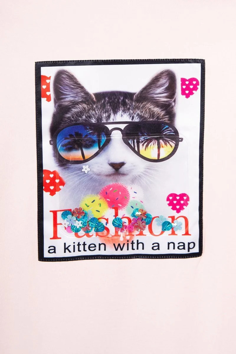 Představujeme vám módní šaty. Šaty má našitou grafiku s kočkou. Šaty mají kapsy. Ideální pro každodenní použití. Ve vašem šatníku rozhodně nesmí chybět. Šaty jsou vyrobeny z vysoce kvalitního materiálu. Velikost je univerzální a vyhovuje dámám, které nosí velikost S, M nebo L.
