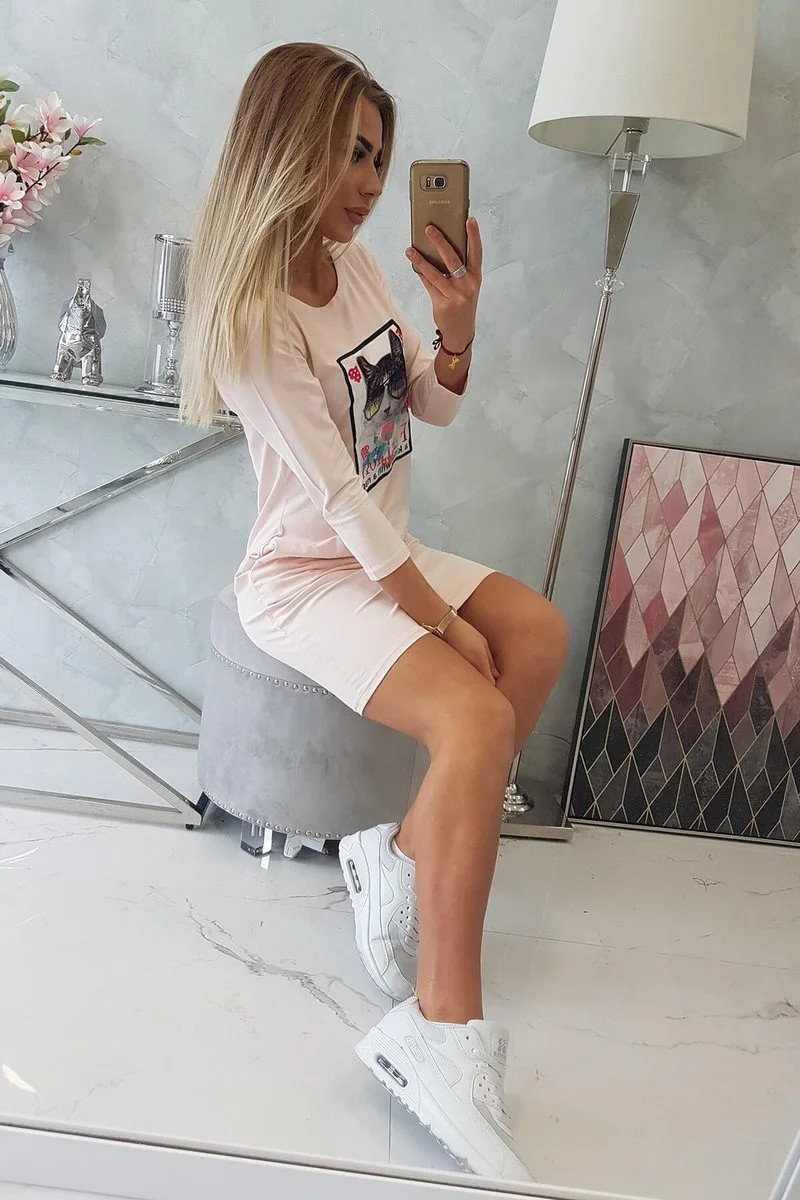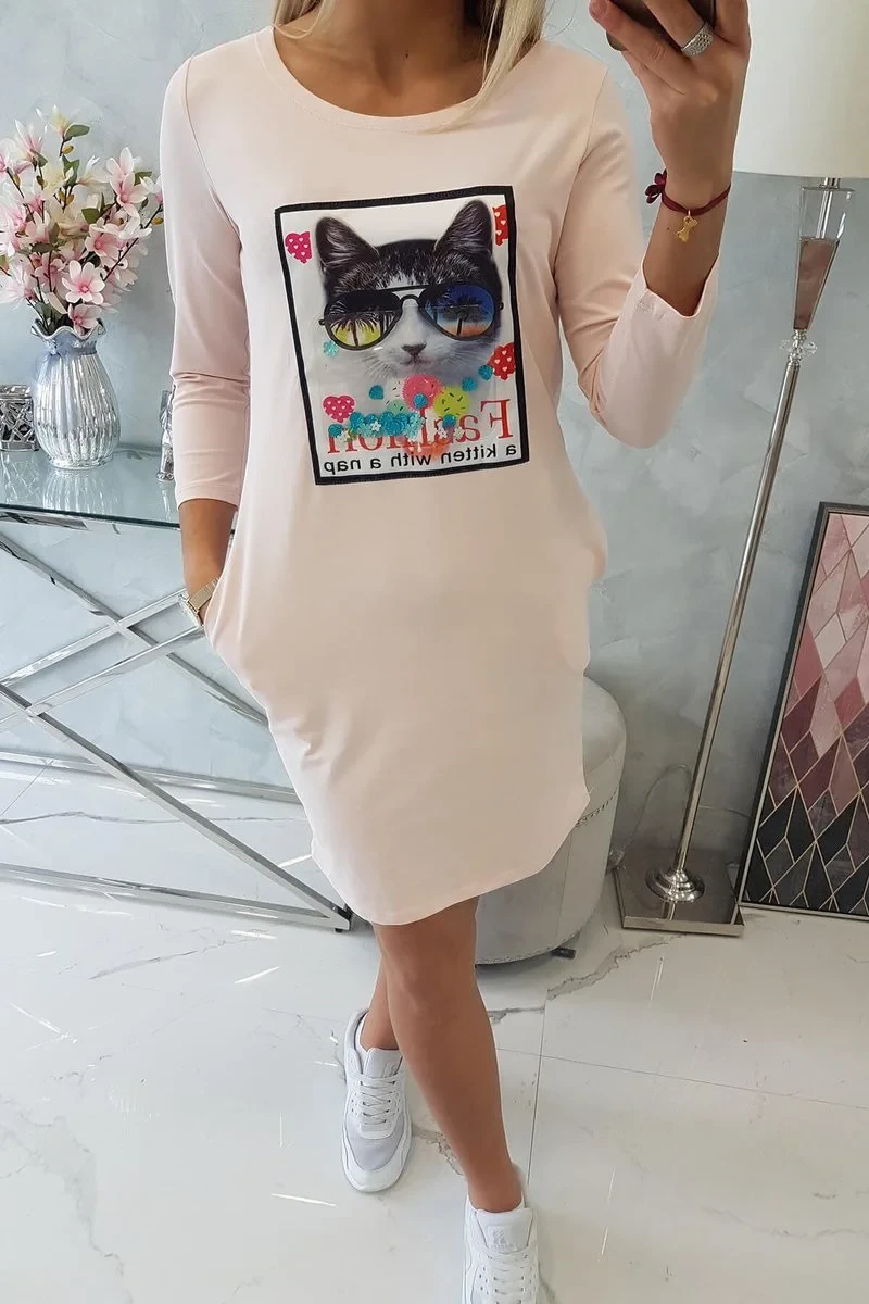 Přidání recenze k 3D kočičí grafické šaty pudrově růžové