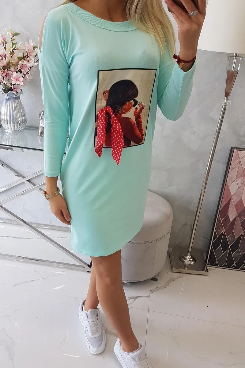 Přidání recenze k 3D mátové šaty s potiskem model 18744096 a mašlí - K-Fashion