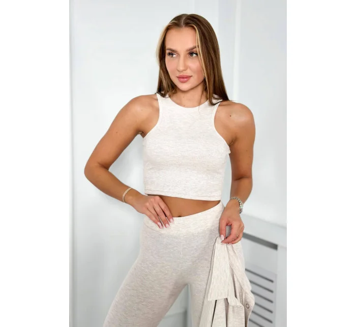 3dílný set halenka, top a legíny béžová melanž