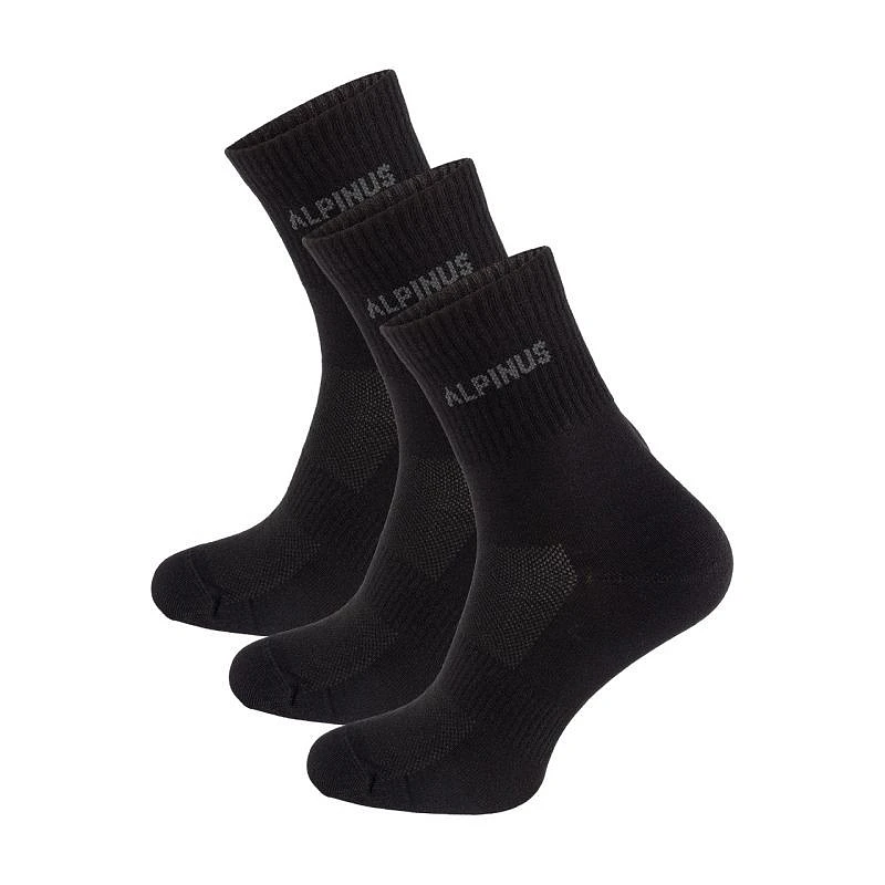 - Ponožky Alpinus jsou vyrobeny z vlákna Coolmax, které odvádí vlhkost a teplo a udržuje nohu v suchu i při intenzivním používání.