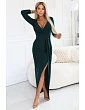 Zelené maxi šaty Numoco - obálkový výstřih, dlouhé rukávy, rozparek na nohou