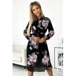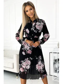 Přidání recenze k 449-6 CARLA Plisované midi šaty s knoflíky a dlouhými rukávy - ROSES na bílém pozadí