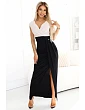 Dvoubarevné maxi šaty s obálkovým výstřihem a rozparkem - Numoco