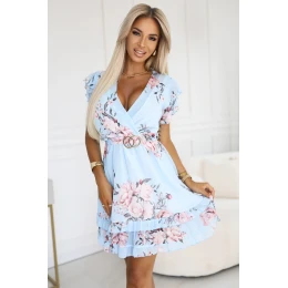 Přidání recenze k 468-3 PATRIZIA šaty s obálkovým výstřihem, páskem a krátkými rukávy - MODRÁ S RŮŽÍ