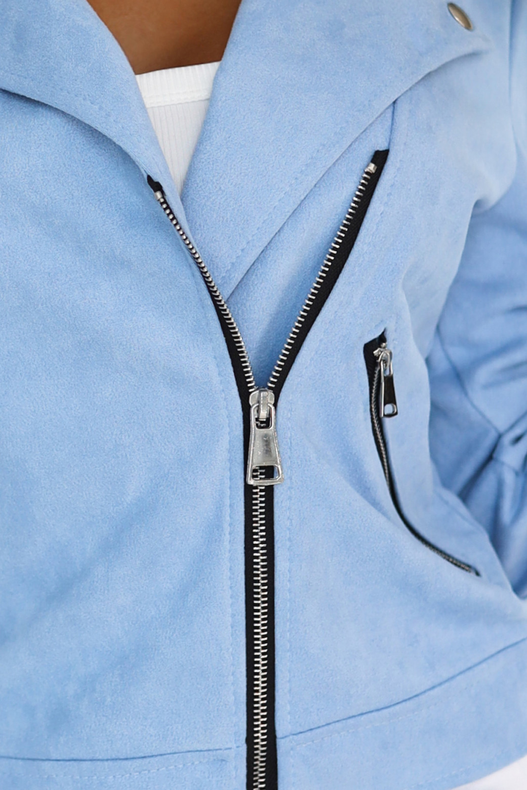 Stylová modrá bunda ramon z měkkého semišového materiálu, ideální pro každodenní jarní a letní styling. značka Numoco Basic - evropský výrobek.