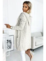 Kardigan s kapucí - kostkovaný béžový